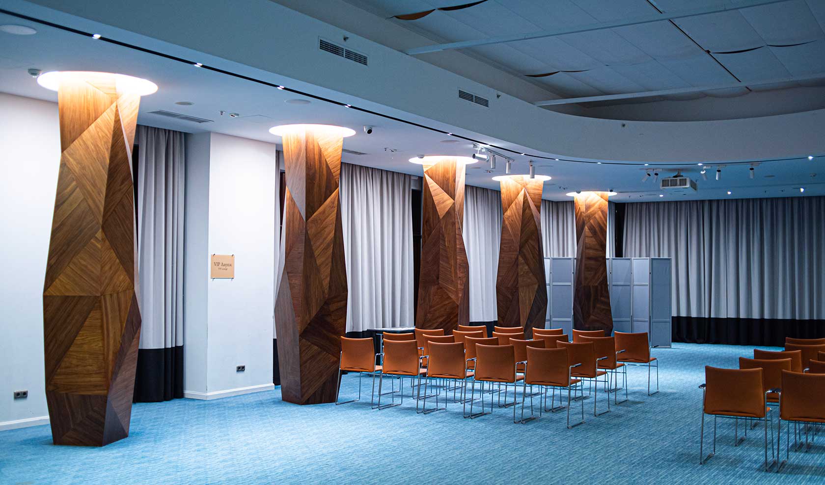 Benvenuti in un santuario di rara bellezza, dove l’anima millenaria della Via della Seta viene reinterpretata attraverso i canoni del design più esclusivo. Sala VIP Tashkent è uno spazio d’attesa e d'affari che trascende la funzionalità, offrendo un’atmosfera di calma e distinzione assoluta. Il Dialogo tra i Tempi L’architettura rende omaggio alle geometrie uzbeke: i maestosi pattern a mosaico e gli intagli tradizionali vengono stilizzati in pannelli di metallo tagliati al laser e retroilluminati. Qui, il calore dell’oro e del velluto si fonde con la fredda eleganza del marmo e del vetro, creando un contrasto armonico che respira storia.